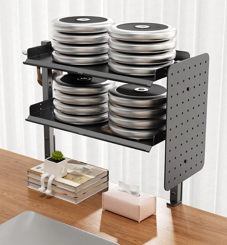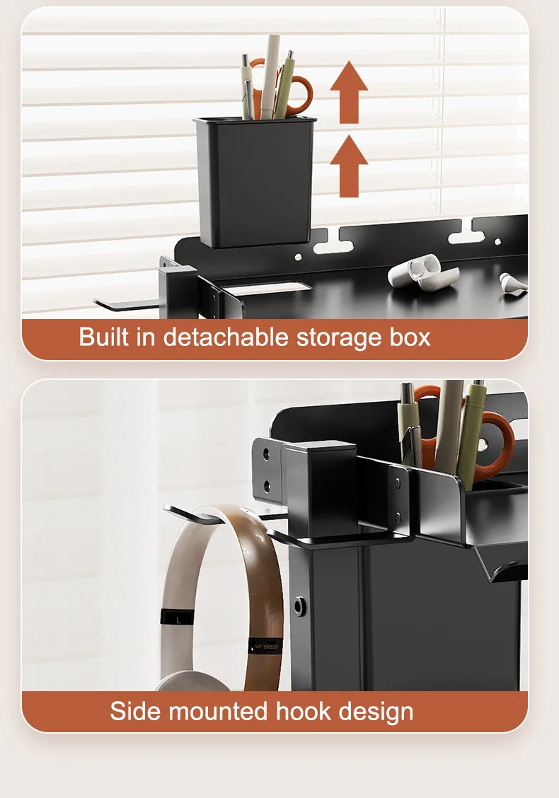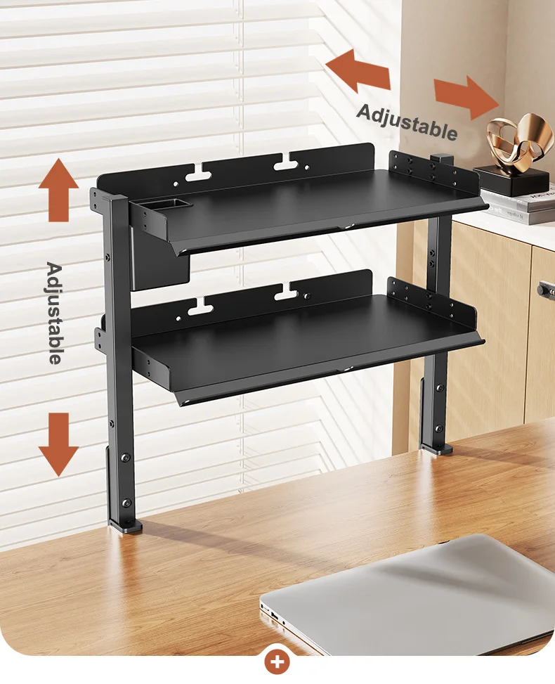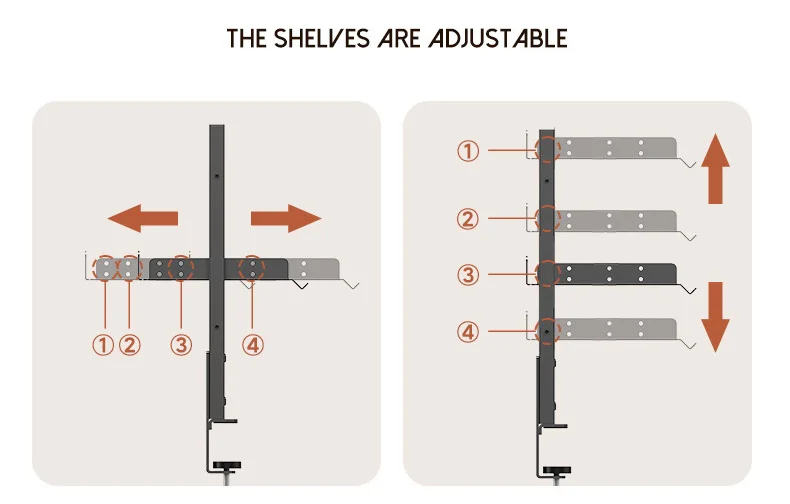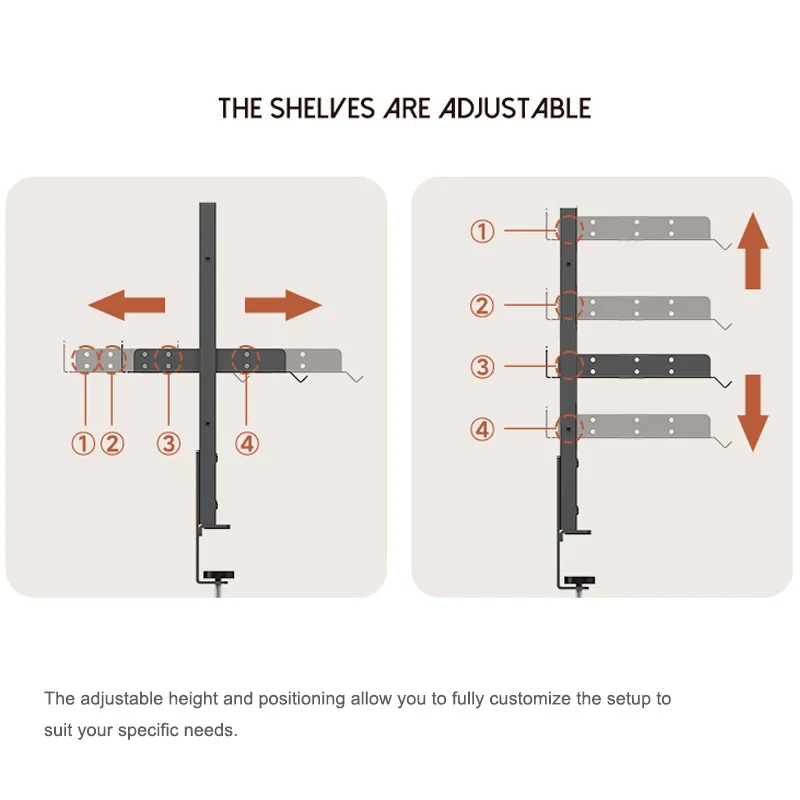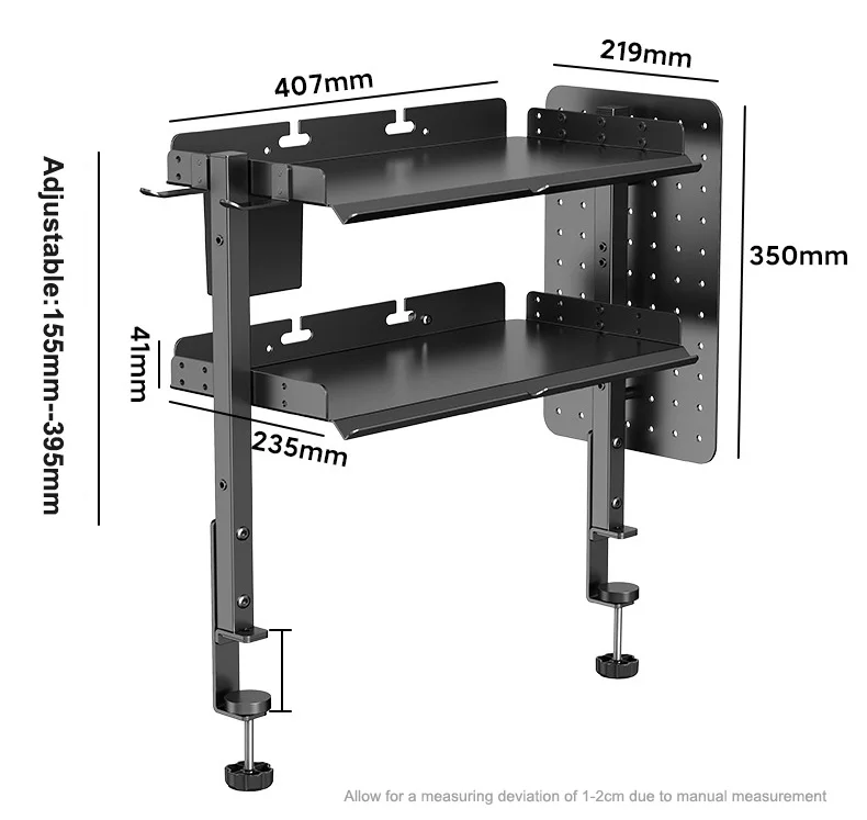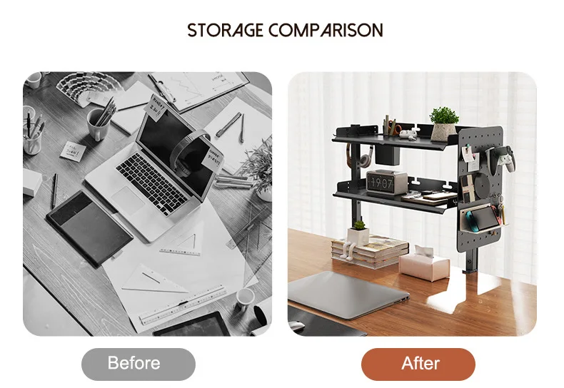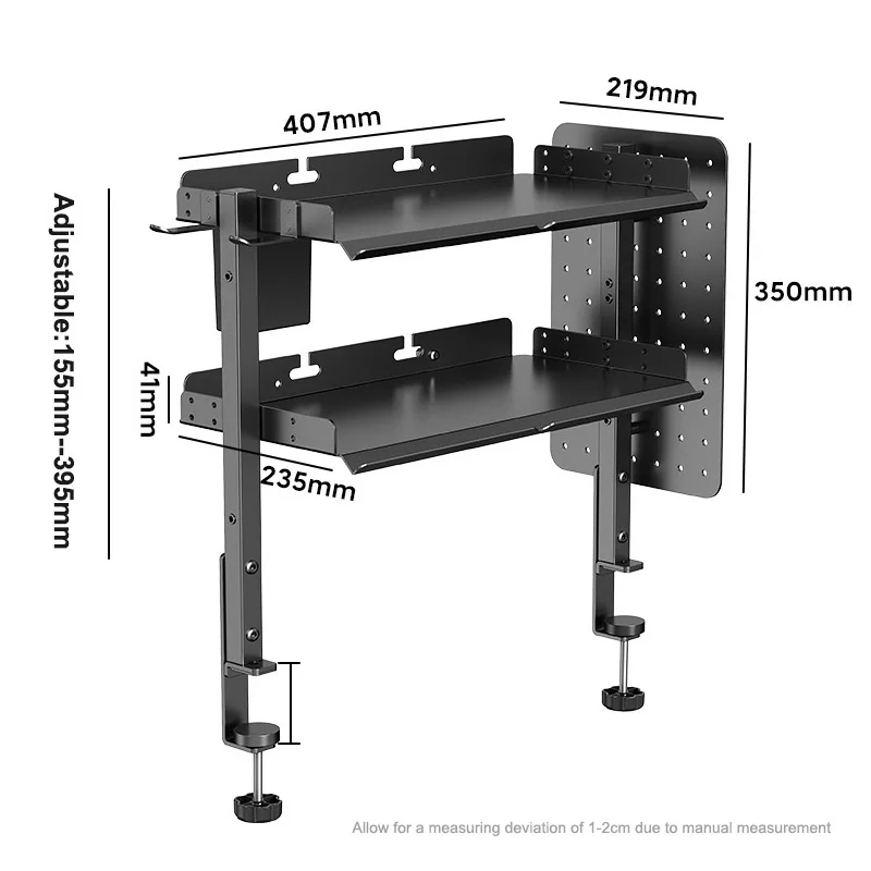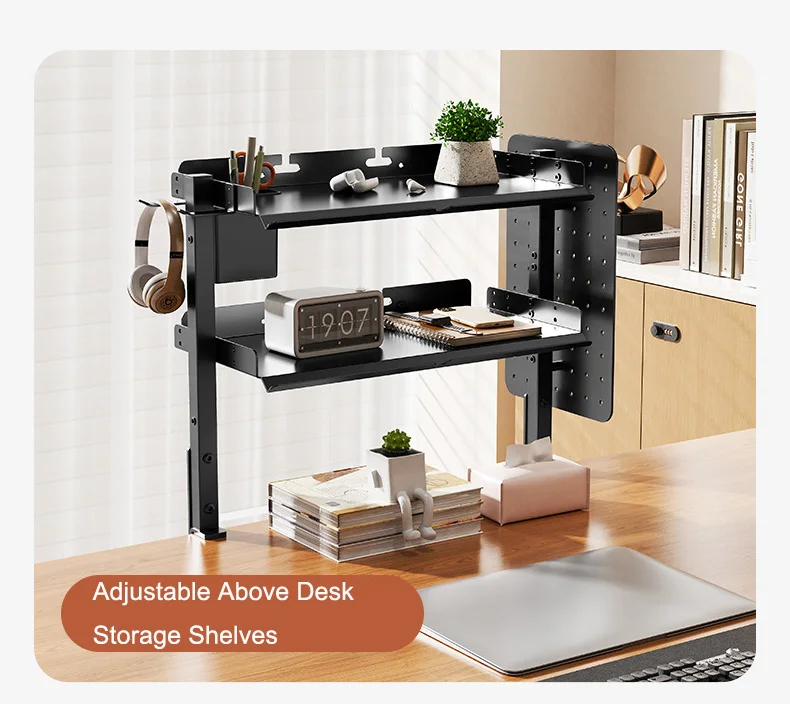 Clamp On Desk Pegboard with 16 inches Organizer Shelf, Adjustable Above or Under Desk Storage Shelf Holds 44 lbs, Magnetic Metal Peg Board for Office and Gaming Accessories