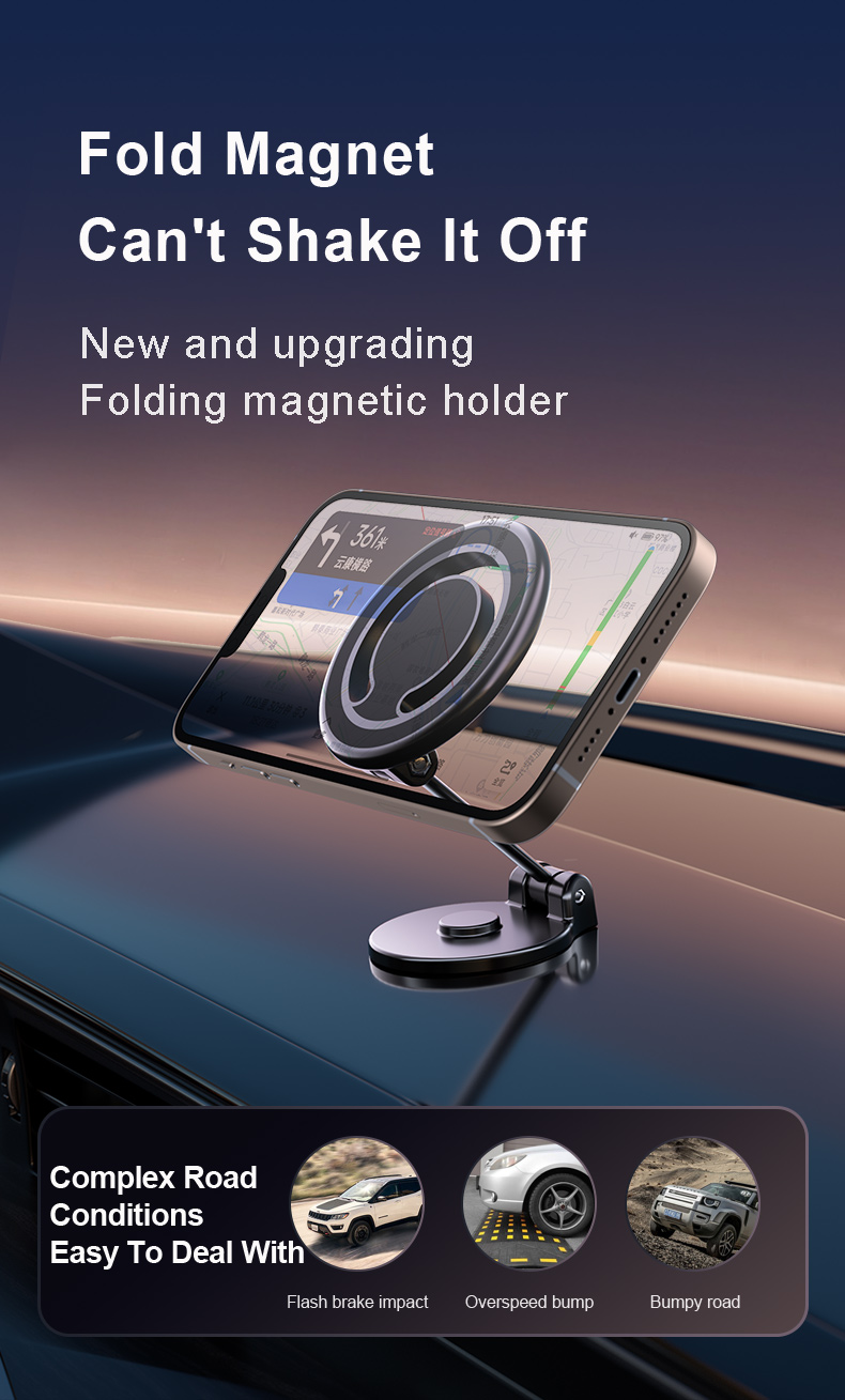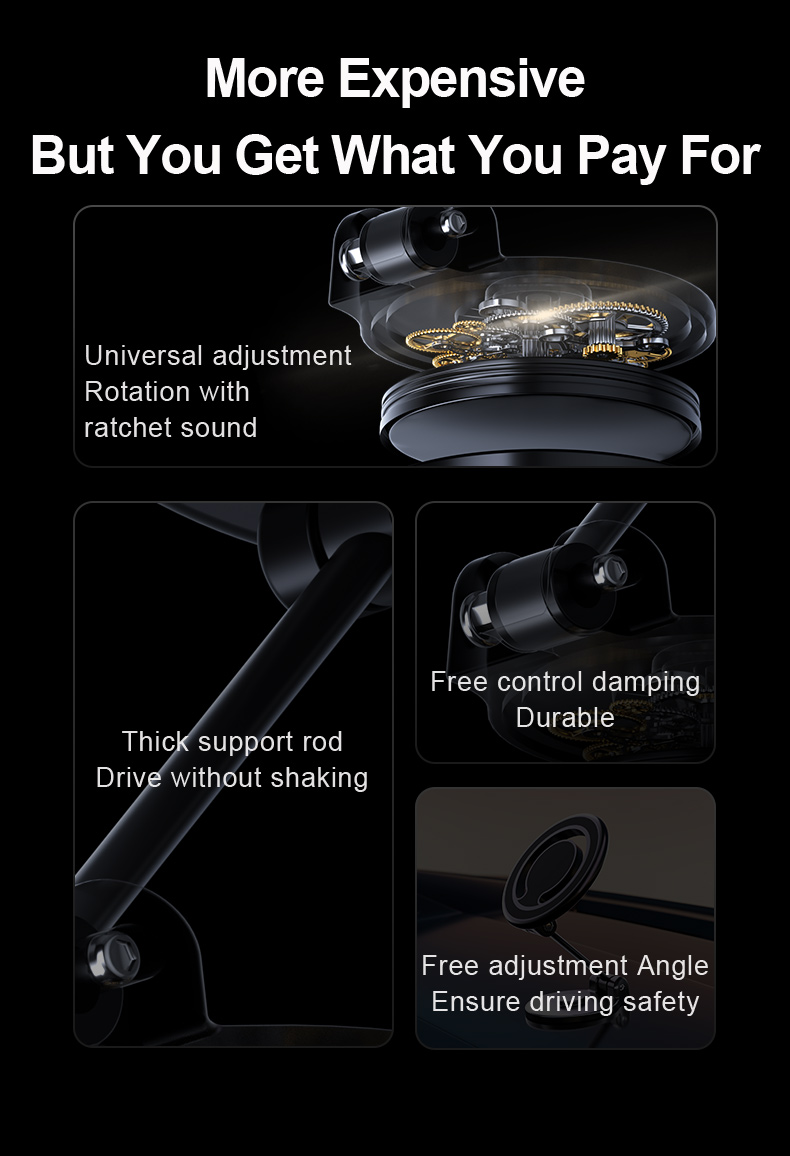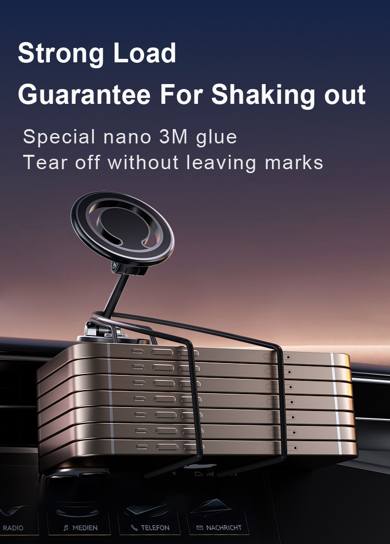 Upgraded with four N52 magnets, the Dolyofg car phone holder offers powerful magnetic force to keep your phone secure—even on bumpy roads.