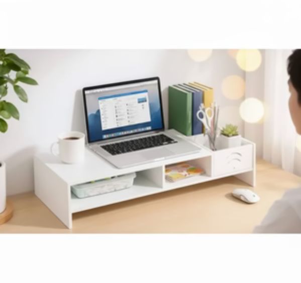 This multifunctional storage cabinet is a smart desktop solution designed to organize your workspace while elevating your laptop or monitor to a comfortable viewing height. With multiple open compartments and side storage sections, it helps reduce desk clutter and improves productivity. Ideal for home, office, or study setups, this organizer combines practicality with a clean, modern look.